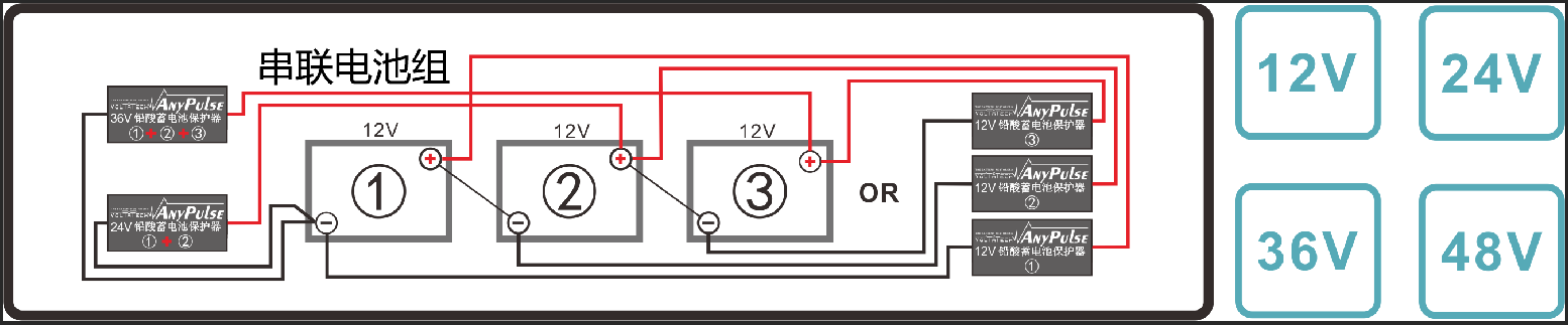 商用車及卡車類啟動電池使用的24V/36Ah~300Ah各種類型的鉛酸蓄電池均可使用。48V供電系統(tǒng)的電池設備需要每個單體24V電池安裝一個保護器BP-24。若電池容量超過300Ah, 也可以使用,但達到修復效果耗時加長。主要應用在卡車,輪船,太陽能路燈電池,軍用車輛和UPS備用電源等。